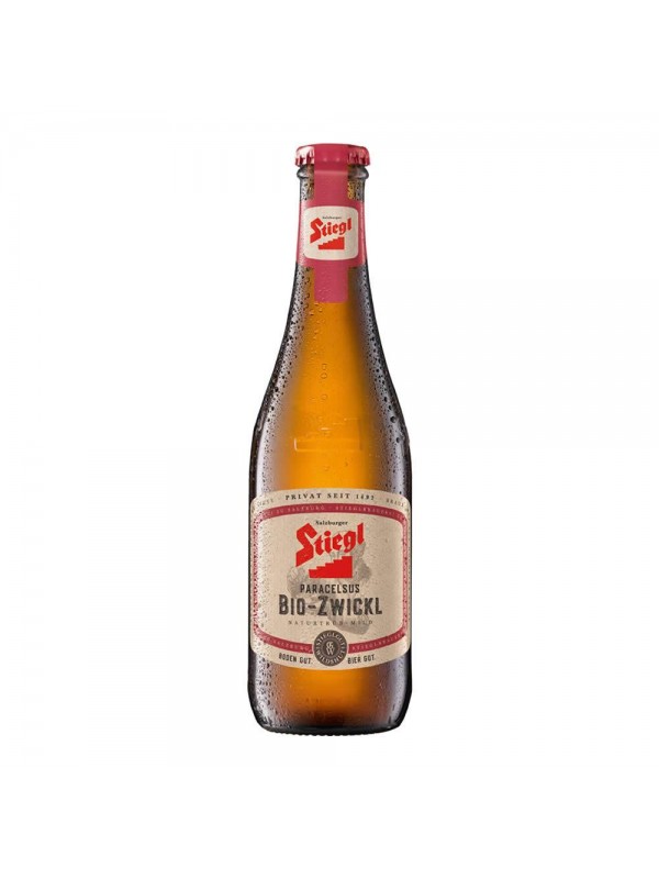 Cerveza clara estilo Zwickl. Naturalmente turbia, sin filtrar. 100% de ingredientes orgánicos de Austria que incluye el antiguo trigo invernal llamado Laufener Landweizen. De color característico ámbar, la Stiegl-Paracelsus Bio-Zwickl destaca por su sabor suave y equilibrado, y un aroma ligeramente floral y frutal. Un deleite absoluto.